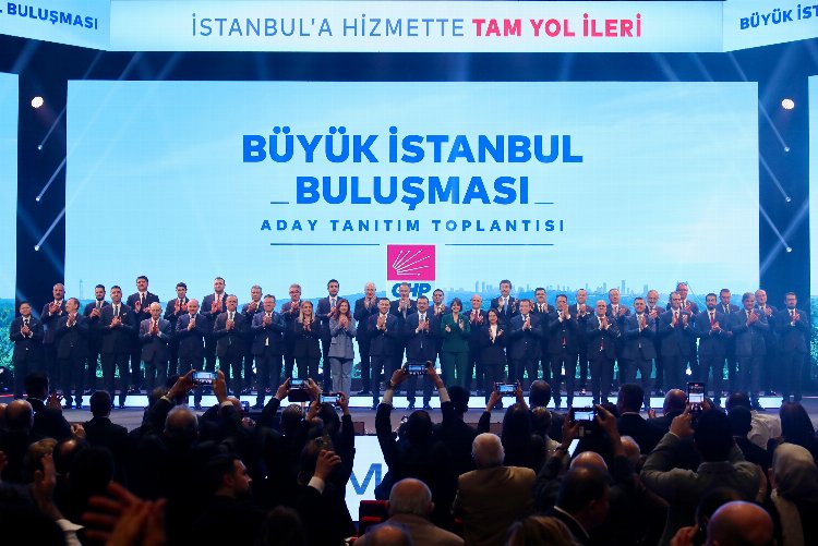 Cumhuriyet Halk Partisi (CHP), 31 Mart 2024 yerel seçimlerinde İstanbul’un 39 ilçesinin belediye başkan adaylarını kamuoyuna tanıttı. “Büyük İstanbul Buluşması” başlığı altında düzenlenen “İstanbul İlçe Adayları Tanıtım Toplantısı”, Haliç Kongre Merkezi’nde gerçekleştirildi. Toplantıya; çok sayıda CHP milletvekili, CHP PM üyesi ve ilçe belediye başkan adayları katıldı. Yüksek katılımlı, coşkulu ve demokrasi şöleni şeklinde gerçekleştirilen buluşmada; “Ekrem Başkan’la tam yol ileri”, “Mustafa Kemal’in askerleriyiz” ve “Her şey çok güzel olacak” sloganları atıldı. Saygı Duruşu ve İstiklal Marşı’nın ardından, sırasıyla; İstanbul Büyükşehir Belediye (İBB) Başkanı Ekrem İmamoğlu ve CHP İstanbul İl Başkanı Özgür Çelik birer konuşma yaptı.