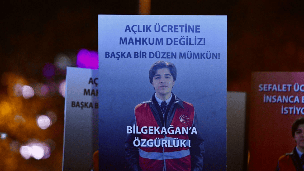 CHP Kadıköy Gençlik Kolları Yöneticisi Bilgekağan Şarbat’ın, asgari ücret protestosu sırasında attığı “Çocukların katili saray rejimi” sloganı gerekçesiyle tutuklanması, partililer tarafından Kadıköy İskele Meydanı’nda protesto edildi. Eyleme CHP Grup Başkanvekili Ali Mahir Başarır, İstanbul İl Başkanı Özgür Çelik, Gençlik Kolları Genel Başkanı Cem Aydın ve tutuklu gencin babası Ercan Şarbat’ın yanı sıra çok sayıda vatandaş katıldı. Maltepe Cezaevi’nde bulunan Şarbat’ın gönderdiği mektubun okunduğu eylemde, yargının siyasi bir sopa olarak kullanıldığı vurgulandı.