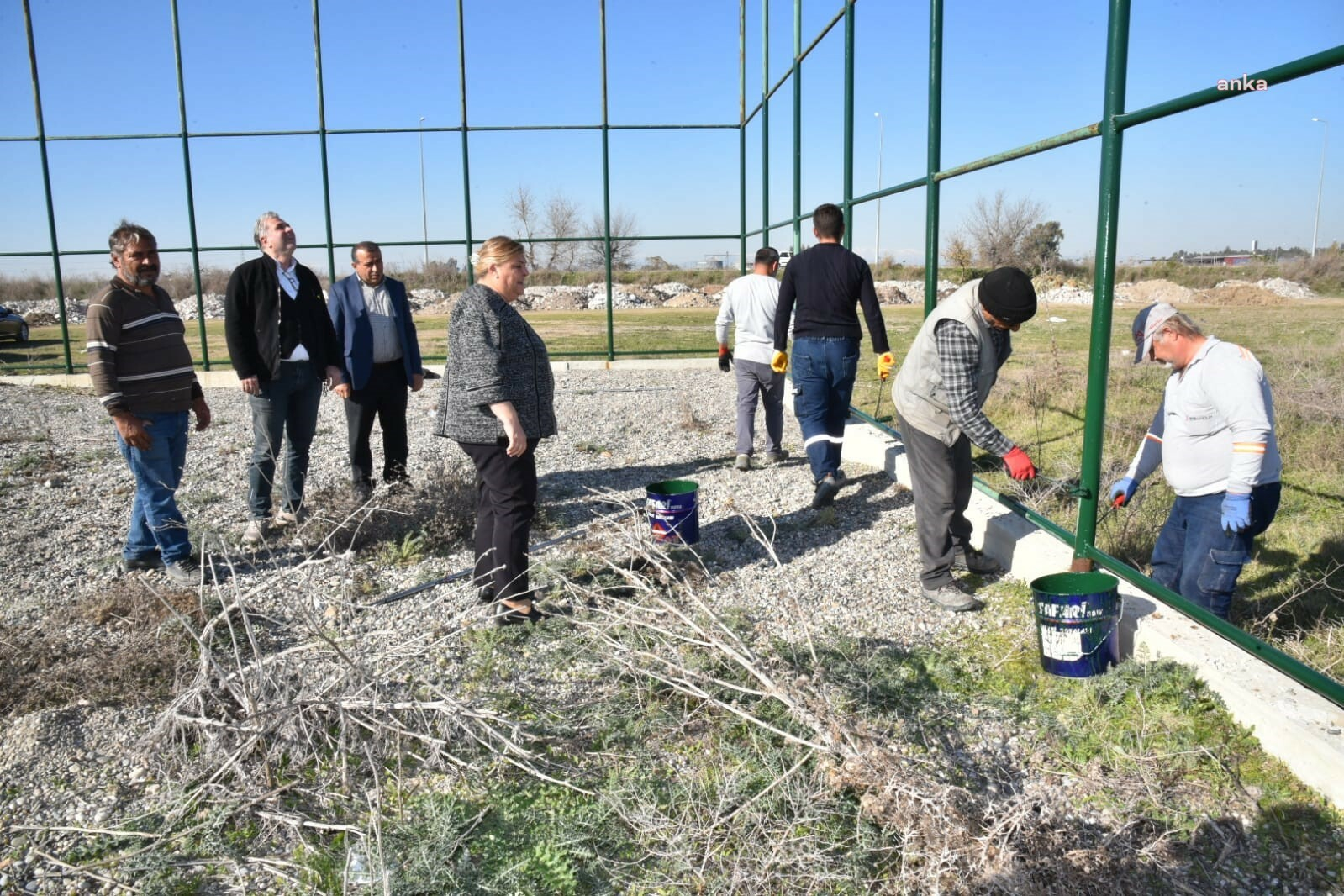 Ceyhan Belediye Başkanı Hülya Erdem, Büyükmangit ilçesindeki halı kortlarda testler yaptı.
