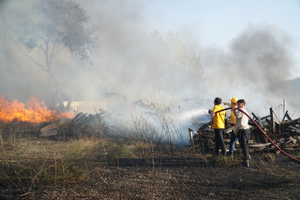 Güney Mahallesi’nde bir tarlada başlayan anız yangını Çorum Caddesi’ndeki bir hurdacının deposuna sıçradı.