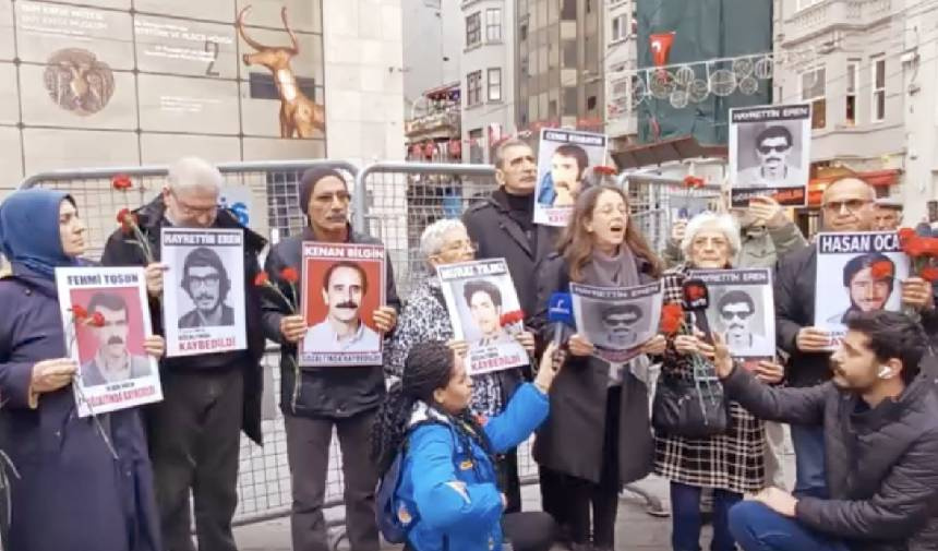 Abim 1980’de gözaltına alınıp kaybedildi. Annem, 2019 yılında vefat edinceye kadar oğlu için karanfil bırakabileceği bir mezar yeri aradı. Bir mezarı yok Hayrettin Eren’in ve tüm kayıplarımızın. Bugün karanfillerimizi Hayrettin Eren ve tüm kayıplarımız ve annem Elmas Eren için Galatasaray Meydanı’na bırakıyoruz.