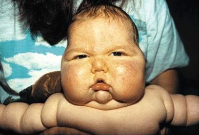 Hasta kişilerde genellikle yüz renginde değişiklik, ensede büyüme ve genişleme, karın yağlanması ancak kol ve bacaklarda değişmeden kalması, kas güçsüzlüğü, sırt ağrısı, karın bölgesindeki deride çatlaklar ve diyabet. ve mide problemleri.