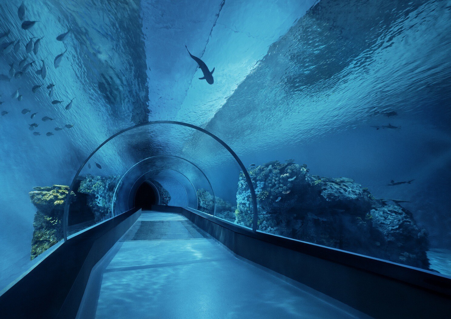 Girişten sonra koridor boyunca sağ ve sol duvarlara inşa edilmiş farklı boyutlarda su havuzları bulunmaktadır. Genel olarak kökenleri bakımından tatlı su balıklarından deniz balıklarına doğru bir sıralama vardır. Ara form olarak acı sularda yaşayan balıkların sunulduğu, nehirlerin denize aktığı veya gelgit akıntılarının yoğun olarak test edildiği, tuzluluğun tatlı su ile deniz suyu arasında oldukça değişken olduğu Acısu Akvaryumları mevcuttur. Akvaryumların önünde balıklar hakkında bilgi veren ışıklı panolar bulunmaktadır. Bu bölümde Guppy, Swordtail, Plati, Moli, Velifera ve türlerini, Japon Balığı ve türlerini, Renkli Cichlid Balıklarını, Angelfish’i, Discus’u ve Canlı doğuranlar olarak adlandırılan onlarca tropik türü görme şansınız var. Üçüncü bölümde yarım daire şeklinde düzenlenmiş geniş bir platform görülmektedir. Hoş geldin. Burada 5 farklı biyomda dekore edilmiş büyük akvaryumlar var. Bu bölümdeki akvaryumlar tesisin en büyüğü olup 35-85 ton arası su tutabilmektedir. Avrupa’nın en büyüğü olan 85 tonluk akvaryumda dünyanın bilinen en büyük tatlı su balığı Arapaima gigas sergileniyor.