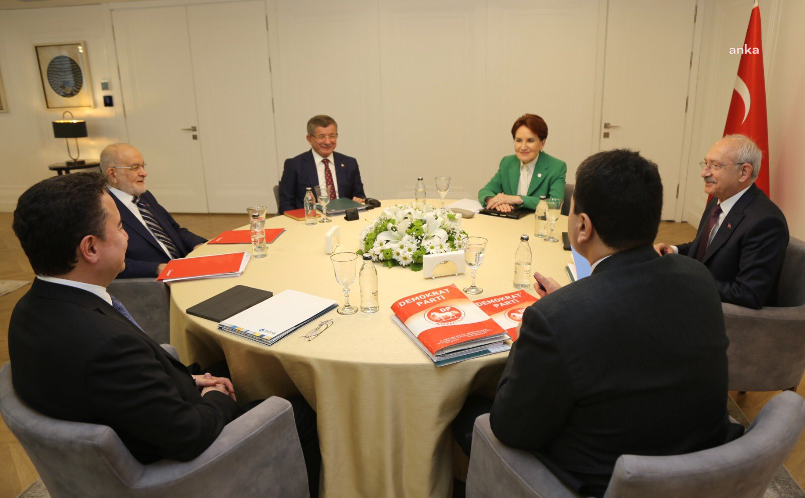 Gelecek Partisi genel merkezinde saat 12.00’de başlayan Altı Masa toplantısı 10 saat sonra sona erdi. Ev sahipliğini Gelecek Partisi Genel Başkanı Ahmet Davutoğlu’nun yaptığı toplantıya, CHP Genel Başkanı Kemal Kılıçdaroğlu, İYİ Parti Genel Başkanı Meral Akşener, DEVA Parti Genel Başkanı Ali Babacan, Parti Genel Başkanı Saadet Temel Karamollaoğlu ve Demokrat Parti Genel Başkanı Gültekin Uysal katıldı.