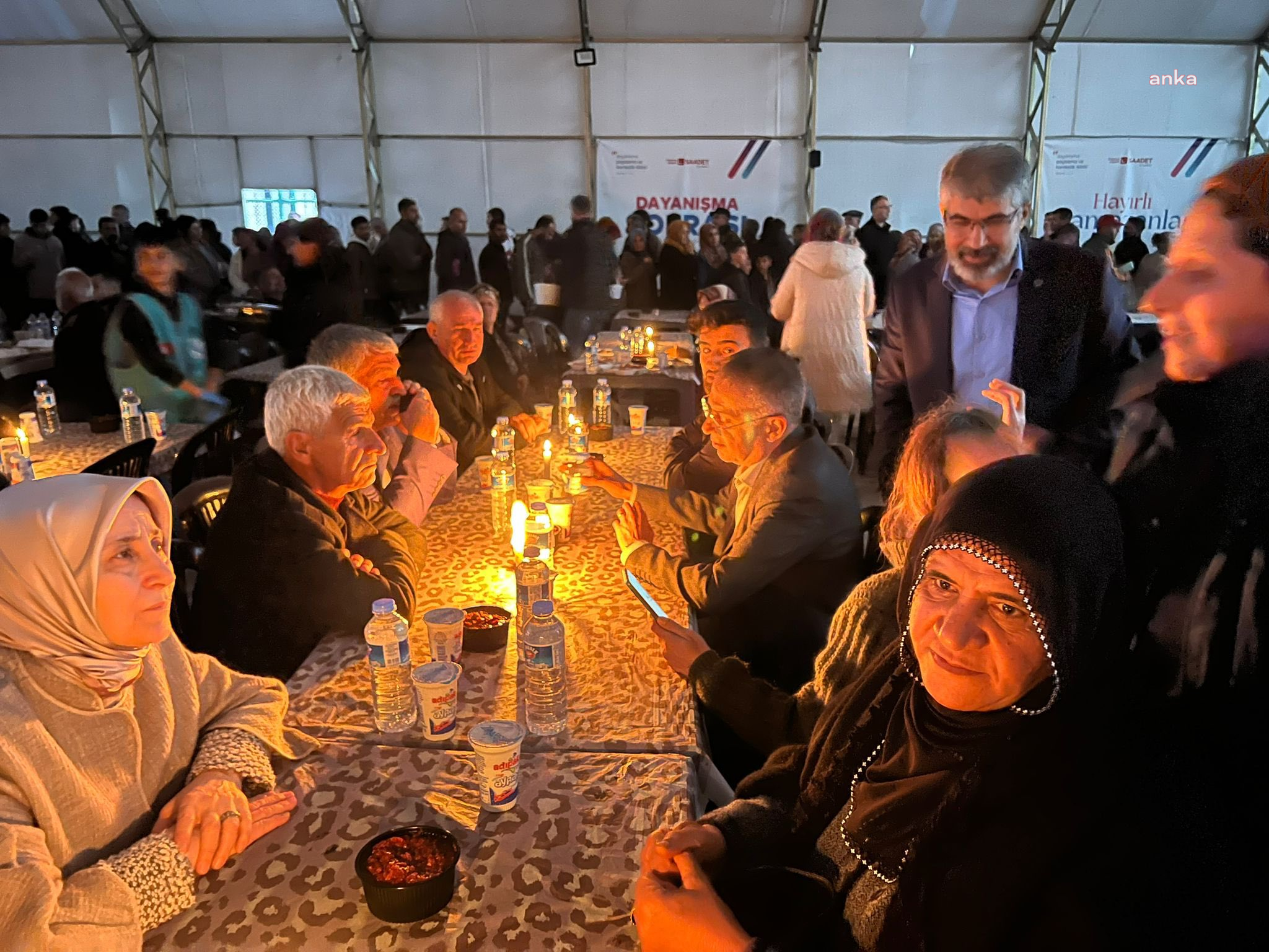 “İlginçtir ki Parti ve bölge teşkilat başkanlarımızın Adıyaman’da bu akşam düzenledikleri kahvaltı programında elektrik kesintisi yaşandı. Eşim Sarı Hanım’ın da katıldığı programda depremzede kardeşlerimiz mumlarla aydınlatılan çadırda kahvaltı yaptılar. .Bu da geçer ha.