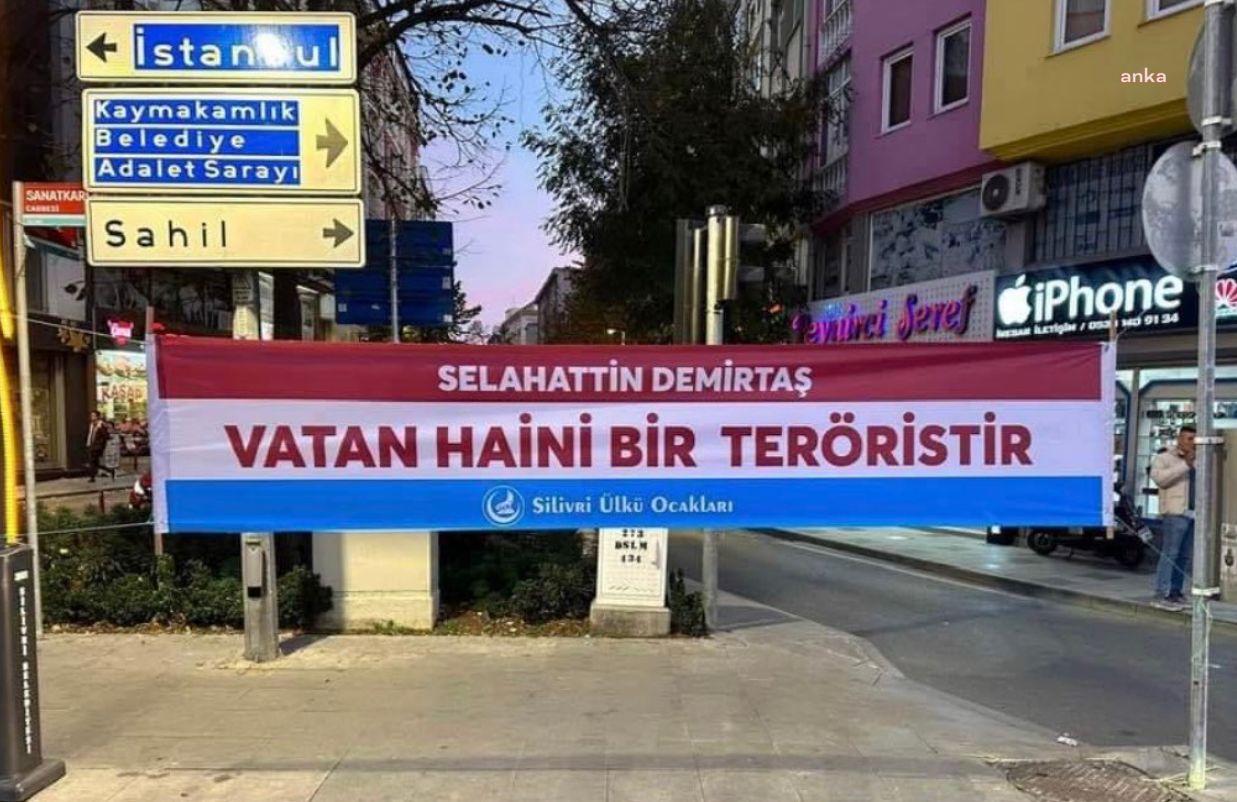 Silivri Olku Okaklari, tutuklu bulunan HDP eski Genel Başkanı Selahattin Demirtaş için birçok yere “Selahattin Demirtaş hain bir teröristtir” yazılı pankartlar asmıştı. Demirtaş Savunma Grubu bugün konuyla ilgili yazılı bir açıklama yaptı. Sadece Demirtaş’a değil, kendisine oy veren vatandaşlara da hakaret ve iftiralarda bulunulduğu belirtilen açıklamada, bu konuda suç duyurusunda bulunulduğu bildirildi. Açıklamada şunlar belirtildi: