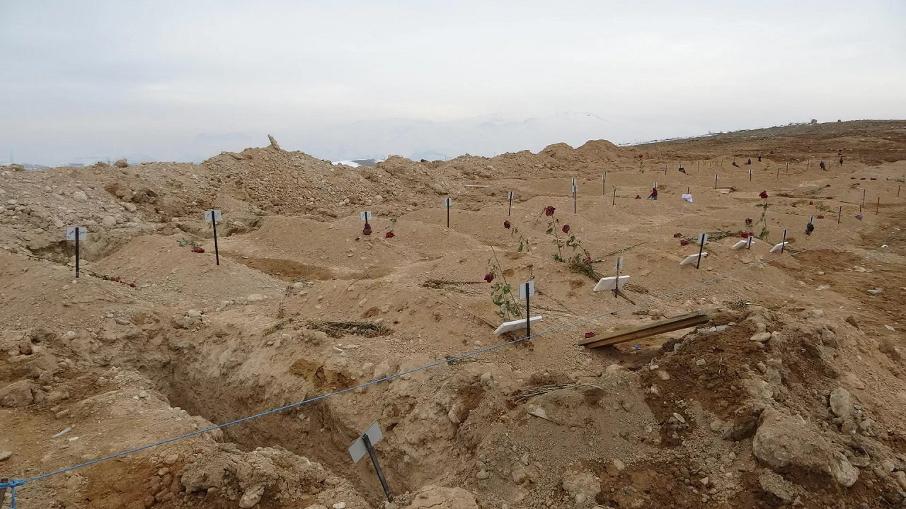 Sputnik’in drone’dan aldığı habere göre; Büyük yıkıma uğradığı Golikhan ilçesine bağlı iki kayan dağın altında kalan Mutlu köyü enkaza döndü. Çok sayıda kişinin hayatını kaybettiği ve yaralandığı köyde hayatını kaybeden 48 yakınının cenazeleri, götürüldükleri Malatya Şehir Mezarlığı’na defnedildi.