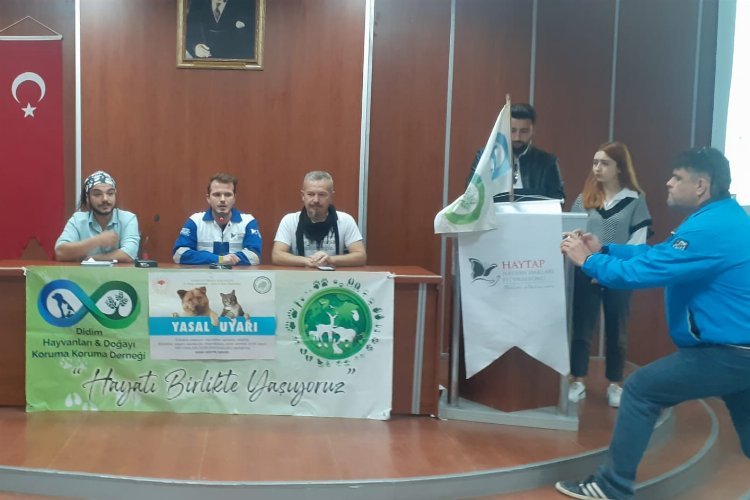 Aydın’da Didim Hayvanları ve Doğayı Koruma Derneği (DİHAD) ile Hiyab, Didim Üniversitesi Aydın Adnan Menderes’teki yerleşkesinde “Hayvan Haklarını Savunma” konulu seminer düzenledi.Kemal Etla – Didim Postası / Aydın (İGFA) – Aydın’ın Didim ilçesinde düzenlenen oturuma Dihad adına Meclis Başkanı Bilal Soren, Hetape Didim temsilcisi Umut Tash ve Didim Dostları adına Can Özygit Tuilu konuşmacı olarak katıldı.