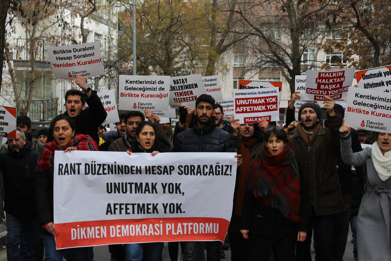 “6 Şubat depreminin üzerinden tam bir yıl geçti. Deprem ve devamında yaşanan felaketler bir yıldır hala devam ediyor. Bizler Dikmen Demokrasi Platformu olarak kaybettiğimiz canları anmak ve rant düzeninden hesap sormak için bugün bir aradayız. Bir yıldır halka yaşatılanları ne unuturuz ne de affederiz. Bizleri yıkıntıların altında bırakanlardan hesap soracağız.