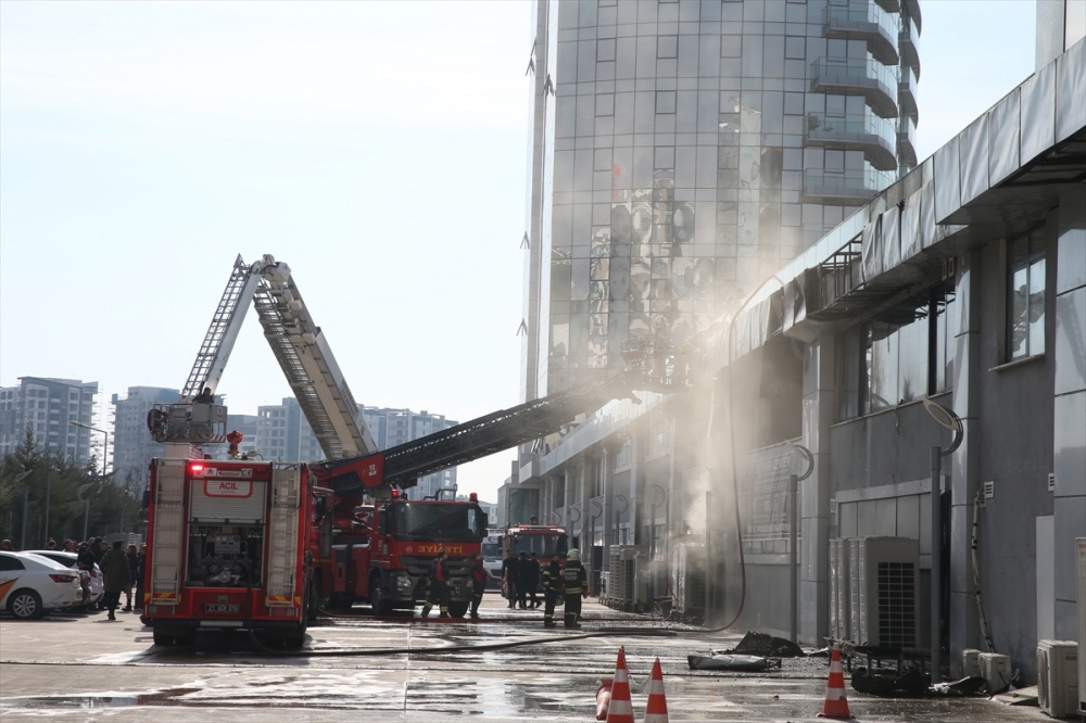 Yangında, duman nedeniyle tedbir amaçlı plazadaki vatandaşlar dışarı çıktı.