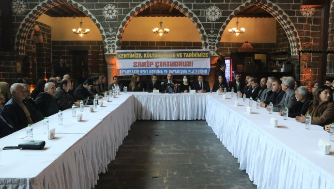 Amed’de faaliyet gösteren 82 sivil toplum, emek ve meslek örgütü “Diyarbakır Kenti Koruma ve Dayanışma Platformu”nun kurulduğunu duyurdu. Green Park Otel’de kamuoyuna duyurulan platformun basın toplantısına katılımcı kuruluşların temsilcileri katıldı. “Kendimize Bakıyoruz” pankartının açıldığı toplantıda ortak metni Türkçe, DTSO Başkanı Mehmet Kaya ve Diyarbakır Tabip Odası Başkanı Elif Turan Kürtçe okudu.