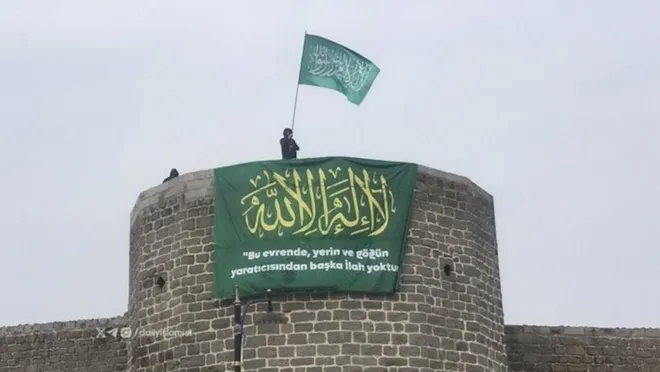 Diyarbakır’da surlara ve şehrin çeşitli noktalarına ‘Yaşasın Şeriat ve Tevhid’ yazılı bayraklar ve pankartlar asılmıştı.