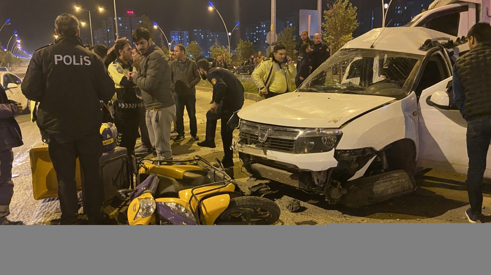 Murat Tunç yönetimindeki 34 DL 9602 plakalı pikap, merkez Yenişehir ilçesi Elazığ yolu Üçkuyu Kavşağı’nda Serhat Koyuncu idaresindeki 21 AAE 484 plakalı otomobile, çarpmanın etkisiyle otomobil de kırmızı ışıkta bekleyen İbrahim Oktay’ın kullandığı 21 ACH 732 plakalı motosiklete çarptı.