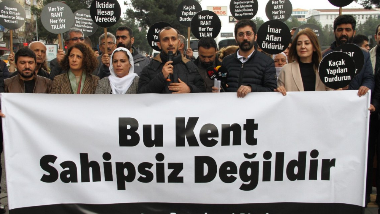 Türkiye Mühendis ve Mimar Odaları Birliği’ne (TMMOB) bağlı mimarlar, “Bu şehir sahipsiz değildir” ve “Deprem ders olmadı, onbinlerce can aldı” pankartlarının asıldığı gösteride konuşma yaptı. Diyarbakır Şube Başkanı Ferit Kahraman, 11 ili vuran depreme dikkat çekerek, depremin yol açtığı hasarın kontrolsüzlük ve bilinçsiz yapılaşmadan kaynaklandığını doğruladı.