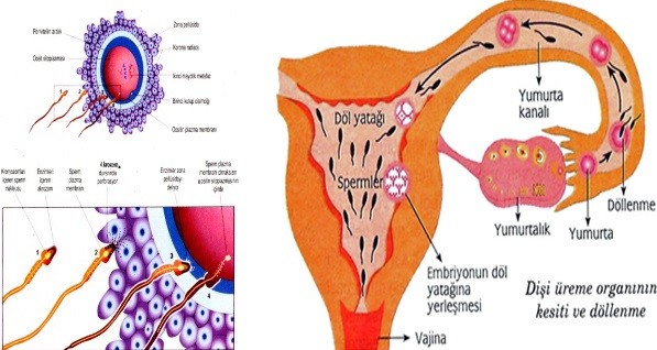 Yumurta hücresinin sperm hücresi ile döllenmesi daha yakından görülebilmektedir. Birçok memeli türünde, yumurta başlangıçta folikül adı verilen ince bir koruyucu hücre tabakasıyla kaplıdır. Bu tabaka, spermin yumurtaya girmesi için bir engel oluşturur; Ancak birçok türde bu folikül tabakası, spermin uç kısmında yer alan akrozom adı verilen bir keseden salınan hiyalüronidaz enzimi tarafından çözülür. Bakteriler de konakçı dokulara girmek için benzer enzimleri kullanır. Yumurtanın salgıladığı kimyasalların uyardığı sperm, foliküler hücre tabakası eridikten sonra bile memelilerde zona pellucida adı verilen başka bir kalın örtü ile karşılaşır. Sperm başındaki reseptörler, bu kapaktaki uzun lifli glikoproteine bağlanır. Glikoprotein üzerindeki türe özgü etiketler, diğer türlerden gelen spermlerin yumurtaya yapışmasını engeller. Bu sırada lizozom, sperm hücresinin plazma zarı ile birleşir ve jelatinimsi hücre kılıfı ve hücre zarı üzerinde etkili olan enzimleri serbest bırakır. Akrozom zarında köklenen boru şeklindeki bir filaman bu başlığa girer ve oositin mikrovillüsleri ile birleşir. Bu füzyon akrozomdan gelen enzimler tarafından da kolaylaştırılır. Sperm ve yumurta zarları kaynaştıktan sonra, çoğu türde yumurta zarındaki elektrik potansiyelinde bir değişiklik olur (böylece ikinci spermin birleşmesini engeller) ve sperm çekirdeği yumurtanın sitoplazmasına hareket eder. Aynı zamanda, spermin bağlanmasından sorumlu glikoproteinin yapısı da değişir, bu da zar potansiyeli normale döndükten sonra bile diğer spermatozoaların bağlanmasını imkansız hale getirir.