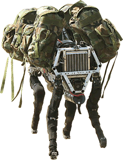 Boston Dynamics adlı bir şirket, dünyanın en gelişmiş dört ayaklı robotunu üretti. Bigdog adlı robot engebeli arazide yürüyor, koşuyor ve ağır nesneleri taşıyabiliyor. BigDog, benzinli motor ve hidrolik sistemle çalışır. Bacakları gerçek bir hayvanın bacaklarından esinlenilmiştir ve oldukça gelişmiştir. Robot 1 metre uzunluğunda, 0,7 metre yüksekliğinde ve 75 kilo ağırlığında.