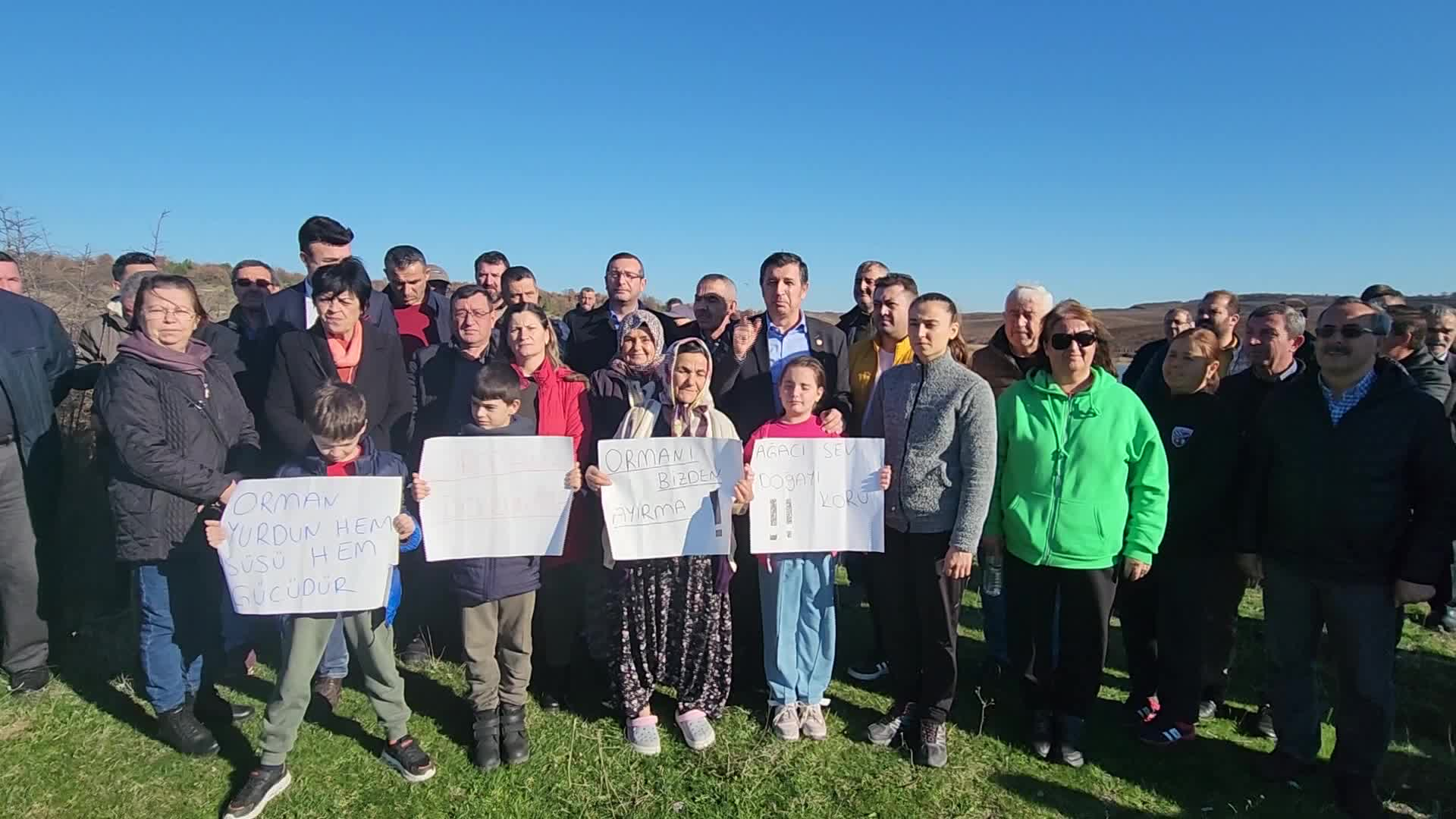 5 bin dönüm mera ve ormanlık alanın şirkete verilmesine karşı CHP Milletvekili Okan Gaytancıoğlu’nun da katıldığı eylemde vatandaşlar, “Ormanıma dokunma”, “Ağacı koru, doğayı sev”, “Ormanı bizimle bırakmayın”. “.