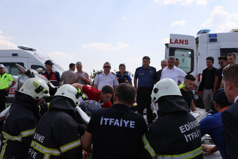 Bu sırada İpsala ilçesindeki inceleme ziyaretinden kent merkezine dönen Edirne Valisi Yunus Sezer kazaya denk geldi.
