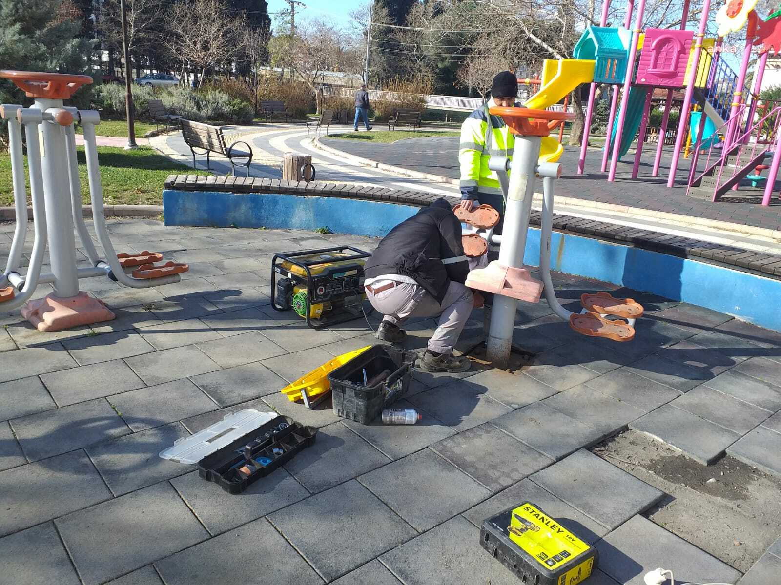 Edremit Belediyesi Park ve Bahçeler Müdürlüğü ekipleri, kent genelinde zamanla bozulan oyun parkları ve spor aletlerinin bakımını yapıyor.