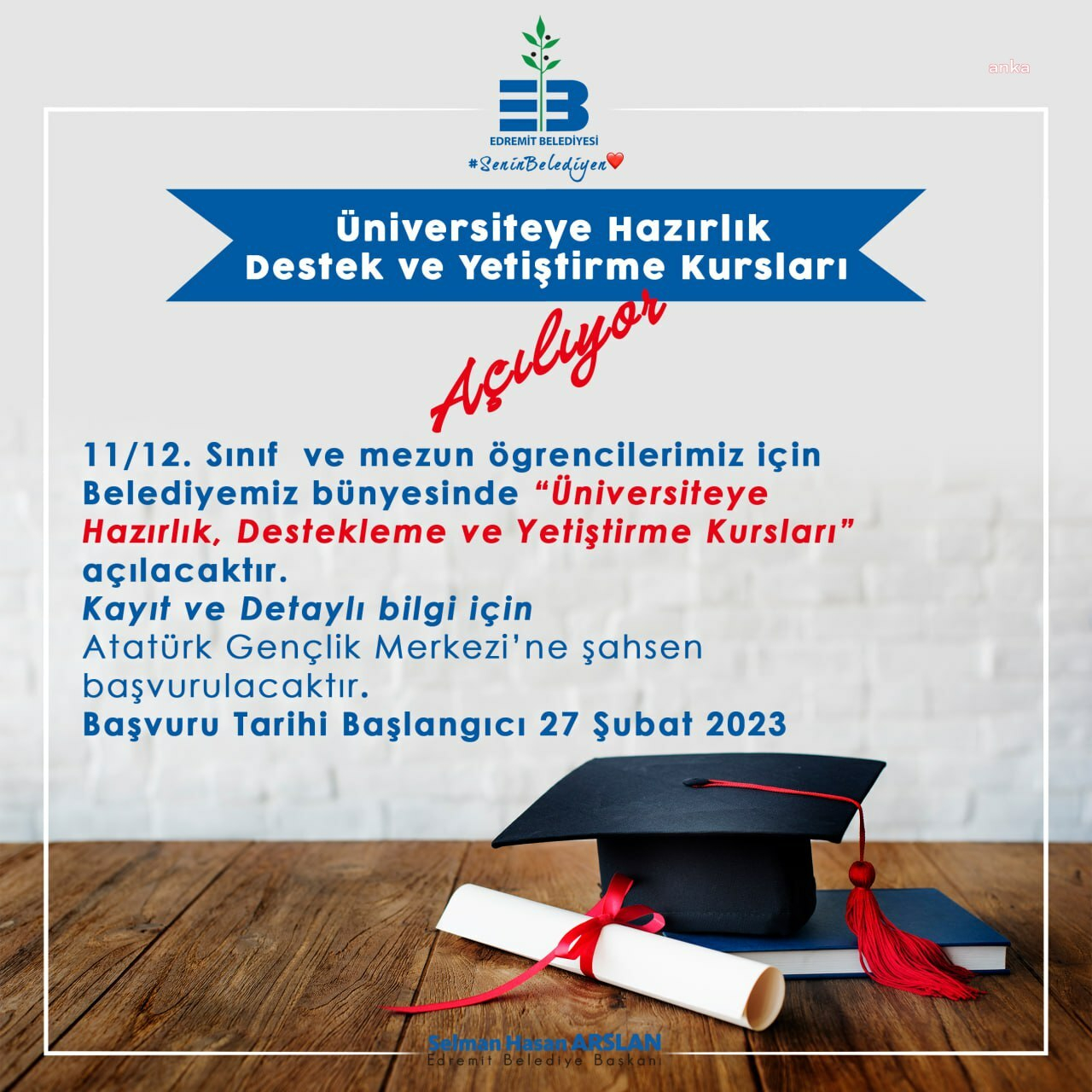 Edremit Belediye Başkanı Salman Hasan Arslan, “Gençlerimizin hayallerini gerçekleştirmeleri için çalışıyoruz. Geleceğimizin teminatı olan gençlerimizin ideallerini gerçekleştirmelerine katkı sağlamak ve onları geleceğe hazırlamak istiyoruz. hayatlarına yön verecek bu yolda her zaman yanlarındayız.”