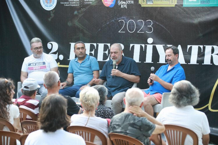 Festivaller kenti Efes Selçuk’ta Efes Tiyatro Festivali devam ediyor. Gün boyu çeşitli etkinliklerle renklenen festivalin üçüncü gününde Selçuk Efes Kent Belleği’nde Mustafa Arıkoğlu’nun katılımıyla “Oyun Yazarlığı” konulu söyleşi düzenlendi. Söyleşide yazmaya okuduğu, dinlediği ustalar sayesinde yöneldiğini belirten Arıkoğlu; “Bizler izlediğimiz, dinlediğimiz, okuduğumuz, gönül verdiğimiz, el aldığımız ustaların ortalamasıyız. Hepsinden birer parça taşıyoruz. Amacımız onlardan aldığımız bayrağı en iyi şekilde devredebilmek” dedi. Teknolojinin ve dijitalleşmenin sanat dallarına darbe vurduğunu belirten Arıkoğlu; “Tiyatro 8 bin yıl önce de vardı bu topraklarda bugün de var 8 bin yıl sonra da var olacak” dedi.