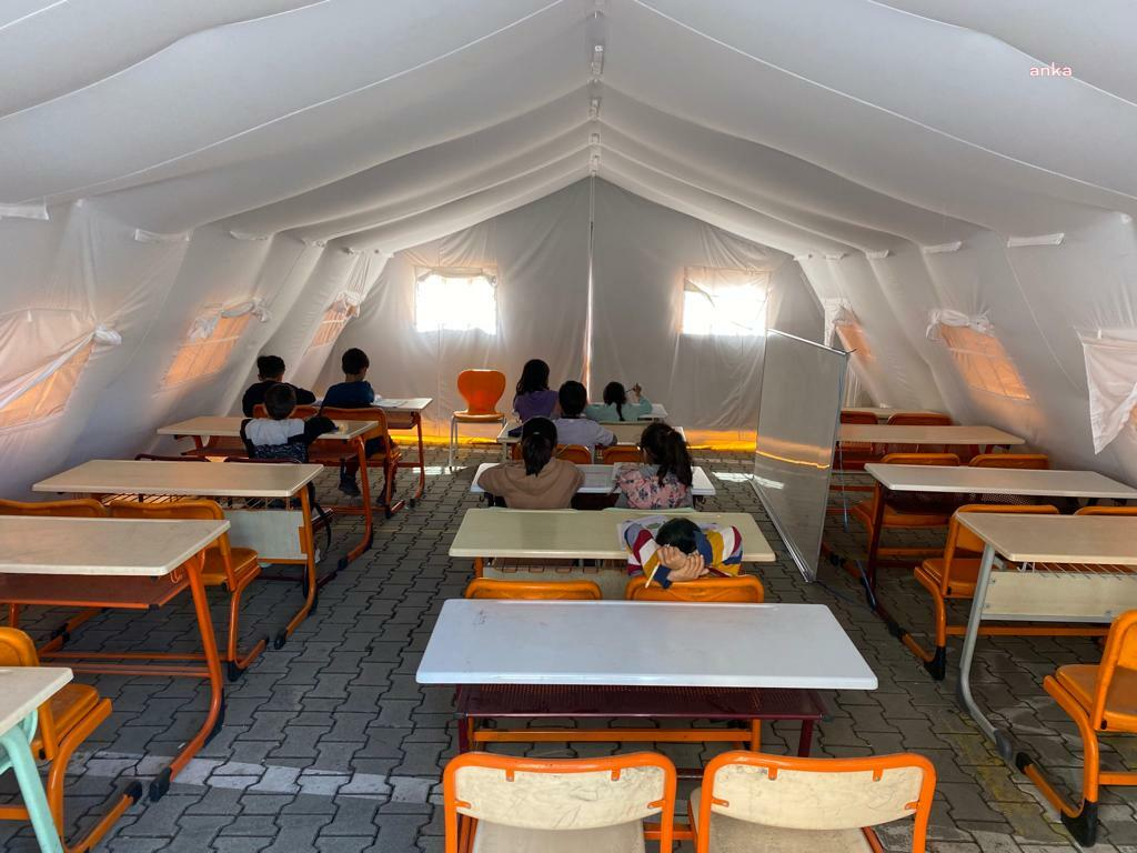 Yetersiz malzeme: Özellikle çadır ve konteynırlarda malzeme yetersizliği nedeniyle alıcı bulamayan öğretmenler, acil çözümlerle eğitim vermeye çalışıyor. Öğrencileri için katlanır masa ve kuru meyve kutularından sandalye yapan öğretmenlerin sipariş ettiği malzemelerin birçoğunun depolarda olduğu söylense de bu talimatların okuldan nasıl ve kimler tarafından getirileceği bilinmiyor. depo.