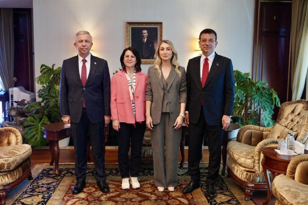 İBB Başkanı Ekrem İmamoğlu ve eşi Dilek İmamoğlu, ABB Başkanı Mansur Yavaş’ı makamında ziyaret etti.