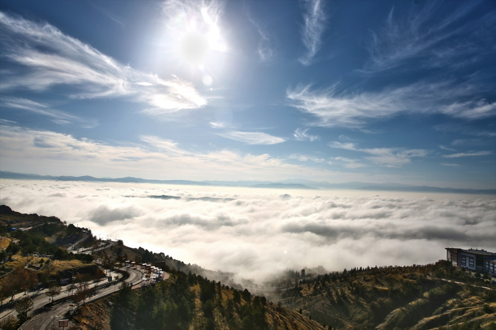 Sis bulutu kentin yüksek kesimlerinde de güzel görüntü oluşturdu. (AA)