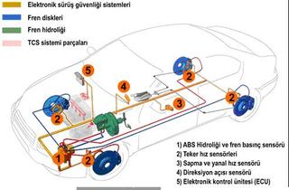 Elektronik kontrol ünitesi : Tüm sensörlerden gelen bilgi ve belgeleri kısa sürede değerlendirerek kritik durumlarda ESP’yi devreye sokan birimdir.