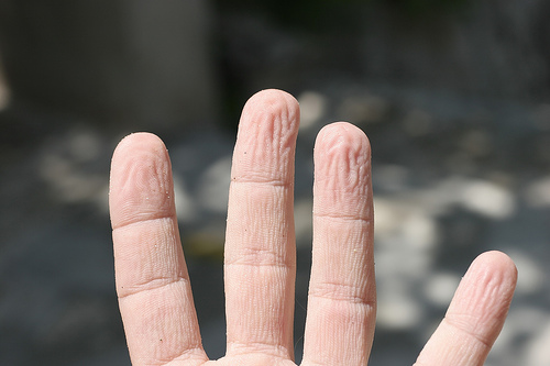 Parmak uçlarımız ve ayak tabanlarımızın uzun süre suda kalması sonucunda su derimizin altına girer. Burada su kendine yer bulmak ister. Ancak parmak uçlarımızda ve ayak tabanlarımızda bulunan kalın deri suyun geçmesine izin vermez. Yapısı gereği suyu ememeyen bu bölgeler bir süre sonra eğilip büzülür.