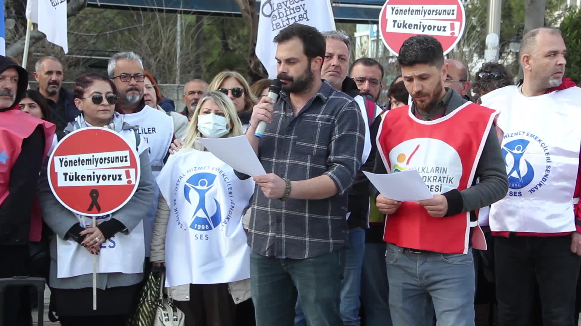 Muğla Emek ve Demokrasi Güçleri adına basın açıklamasını okuyan Haluk Özsoy, “Bütün yetkilileri kendisine bağlayan, kurumların bağımsızlığını ortadan kaldıran bu saray rejimi bu katliama imza attı. Derhal istifa edin.” Bu deprem ama onlar da bu cinayete ortaktırlar.”