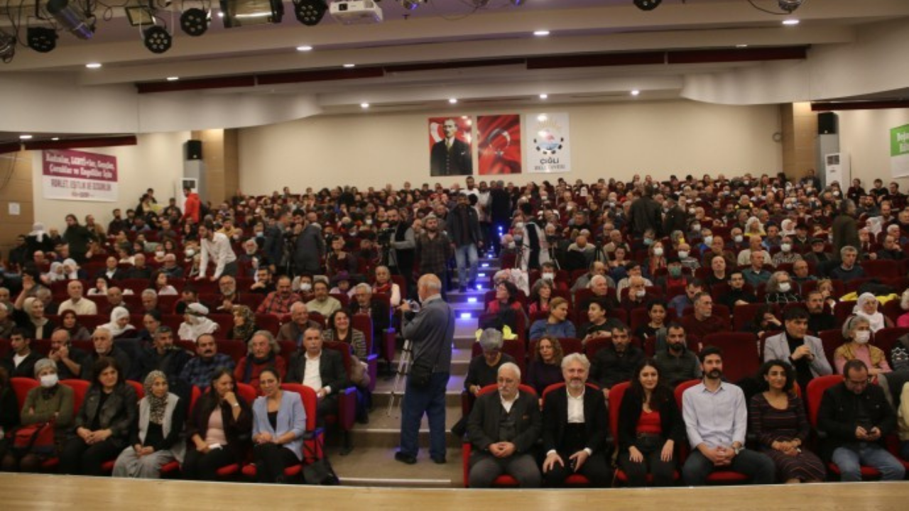 Çeğli metro istasyonunda toplanan Güçlü Kadınlar Bir Arada (KBG), davul ve tramvay eşliğinde toplantı salonuna girdi. Kadınlar sık ​​sık “Jin, Jian, Azadi”, “bir kadının hayatının özgürlüğü” sloganları attı. Toplantı öncesi dans programı düzenlendi. “Bej Berksoydana Rojava”, “Bej Berksoydana Öcalan”, “Jane, Jian, Azadi”, “Tek başımıza veya hep birlikte kurtuluş yok”, “Faşizme karşı omuz omuza”, “Yaşasın devrim ve sosyalizm” ve “Birlikte kazanacağız” ve “Savaşa değil, işçilere bütçe” sloganları attı. Toplantı, özgürlük uğruna yaşamını yitirenler anısına bir dakikalık saygı duruşunun ardından Emek ve Özgürlük Koalisyonu’na ilişkin sinematik bir sunumla başladı.