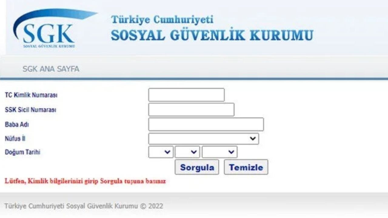 uyg.sgk.gov.tr/HizmetHesabi4c/ sayfasına girilirken aşağıdaki bilgiler istenir: