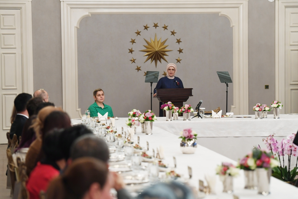 Emine Erdoğan, Devlet Konukevi’nde düzenlenen iftarda Kahramanmaraş’ta meydana gelen depremlerden etkilenen depremzedeler ve bölgede yaptıkları çalışmalarla dikkat çeken gönüllülerle bir araya geldi.