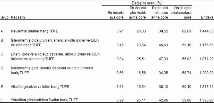 Geçen yılın aynı ayına göre en az artış gösteren ana grup yüzde 14,76 ile konut oldu. Geçen yılın aynı ayına göre en fazla artış kaydeden ana grup ise yüzde 67,22 ile lokanta ve oteller oldu.
