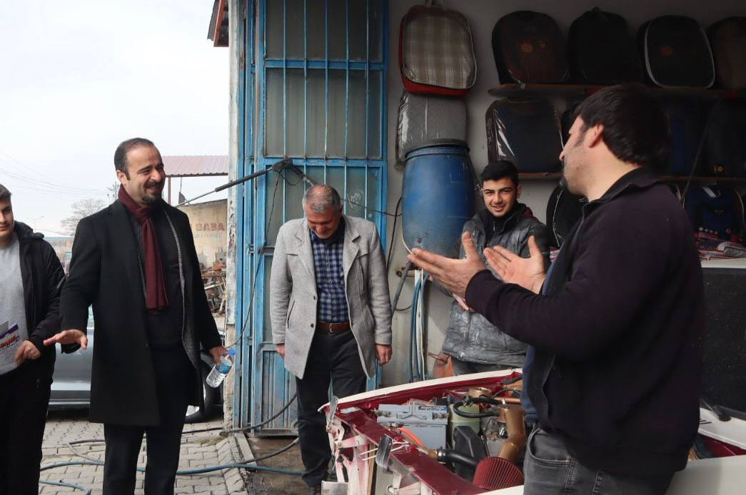 Van’ın Erciş ilçesinde Halkların Eşitlik ve Demokrasi Partisi (DEM Parti), Erciş Belediyesi Eşbaşkan Adayı Baran Bilici, ilçe örgütü yöneticileriyle birlikte sanayi sitesini ziyaret ederek, esnaflarla bir araya geldi.