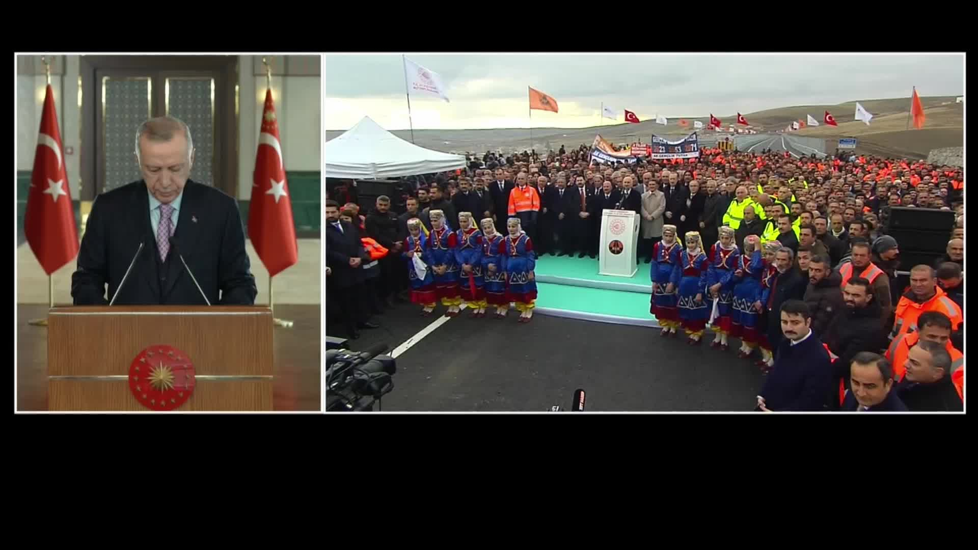 Ağrı’da tutuklu bulunan Cumhurbaşkanı Recep Tayyip Erdoğan; Ankara’dan direkt bağlantı ile Ağrı-Hamur-Tutak-Patnos Devlet Yolu’nun açılış törenine katıldı. Erdoğan şunları söyledi: