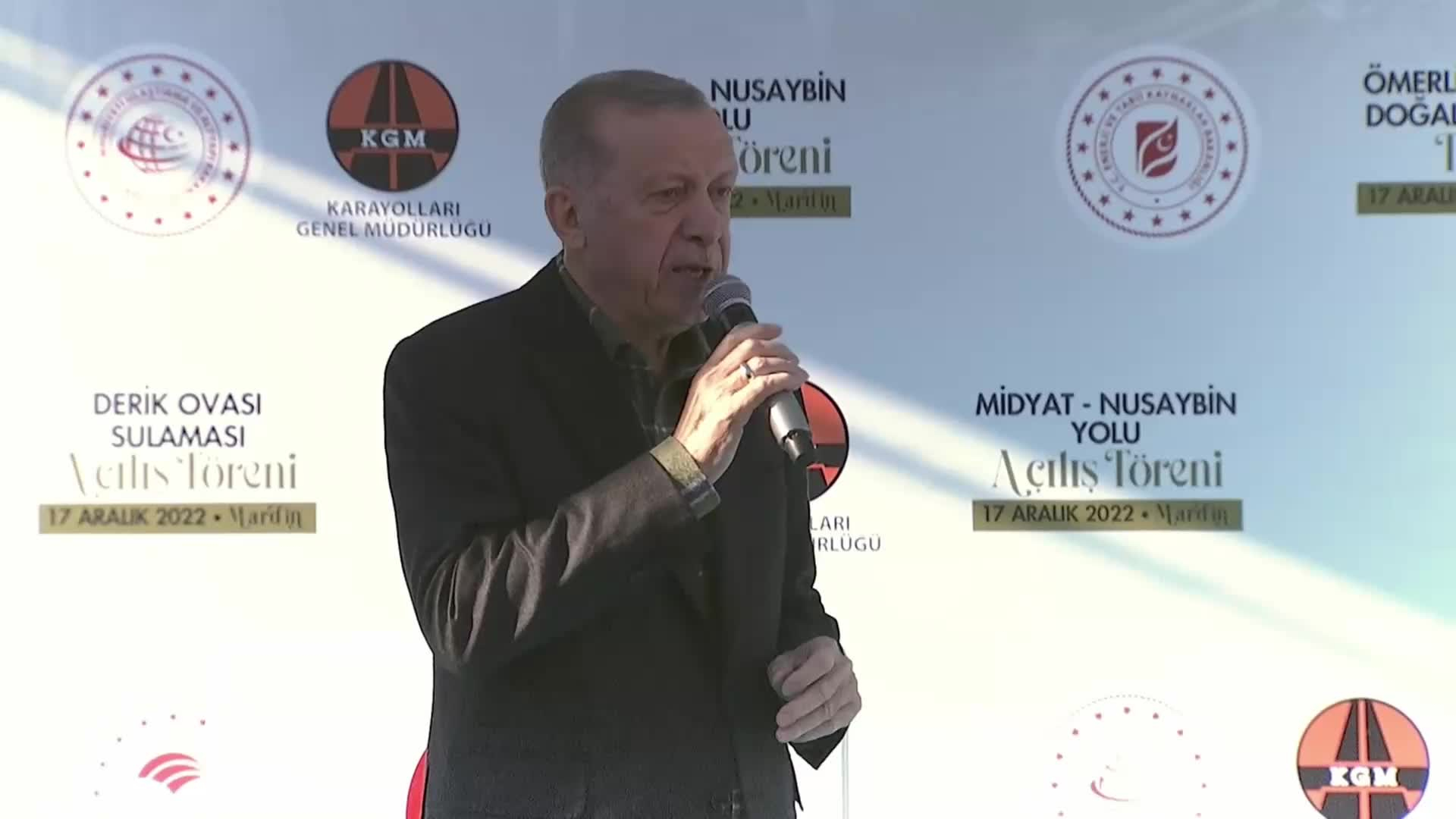 Cumhurbaşkanı Recep Tayyip Erdoğan, Mardin’de. Mardin Derik’in kolay sulaması, Midyat Nusaybin Yolu, Amrlı ve Darjit Doğal Gaz Temini ve tamamlanan diğer projelerin toplu açılış törenine katıldı. Erdoğan şu şekilde konuştu: