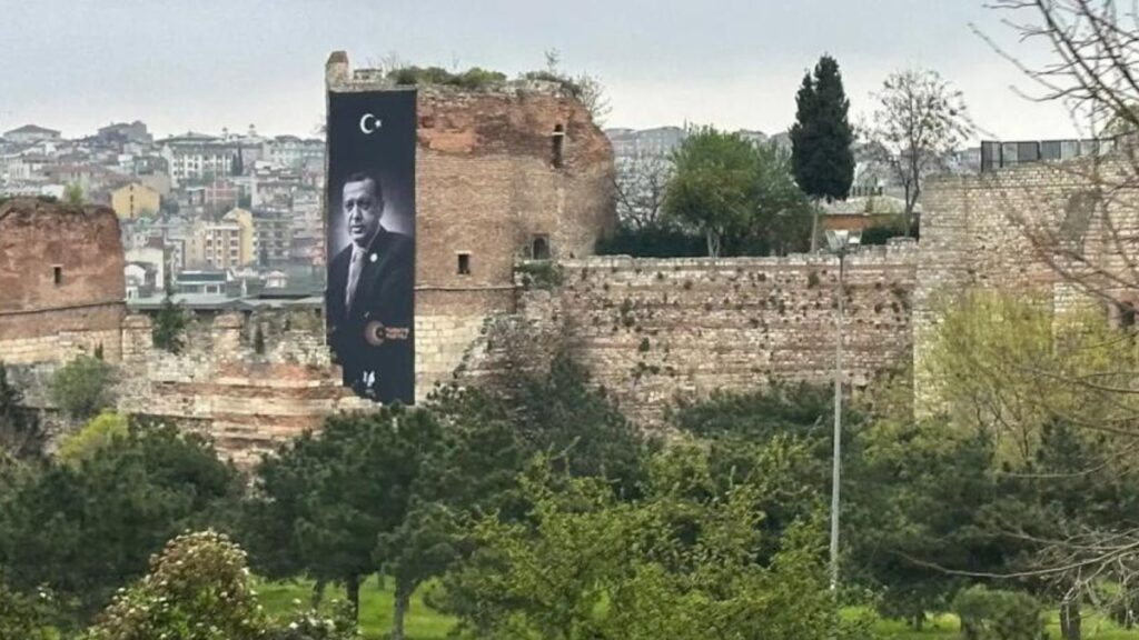 Cumhurbaşkanlığı için yarışan Millet İttifakı adayı Kemal Kılıçdaroğlu, Ümmet Partisi adayı Muharrem İnce ve İttifakı adayı Ata Sinan Ogan ile Recep Tayyip Erdoğan, geçtiğimiz hafta İstanbul Evansaray’da tarihi bir duvara dev bir pankart asmıştı.