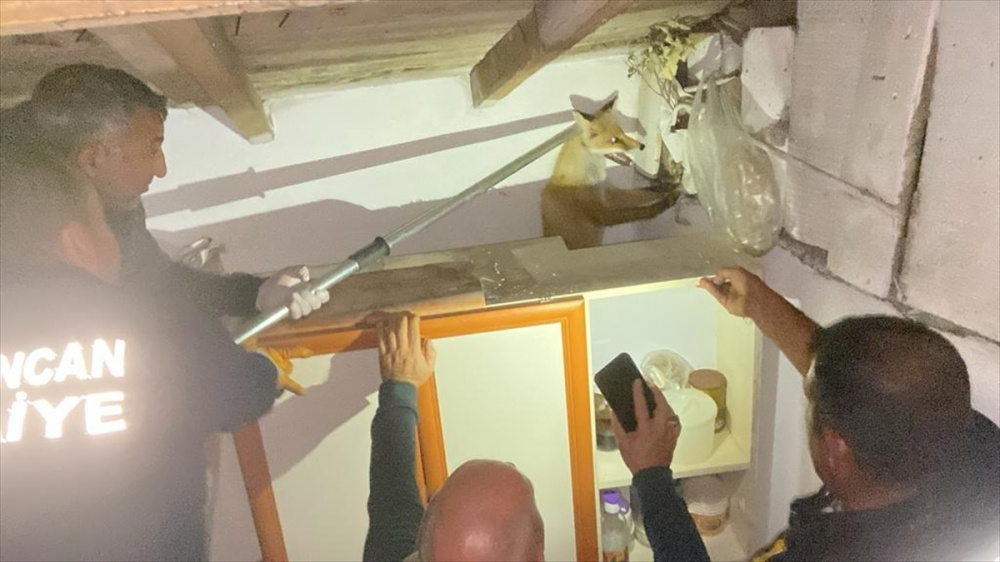Erzincan’da, apartmanın çatı katındaki dolapların arkasında sıkışan tilki, itfaiye ekiplerince kurtarıldı.