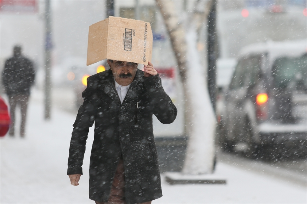 Kars’ta ise yağışla cadde ve sokaklar karla kaplandı, vatandaşlar ev ve iş yerlerinin önündeki karları küredi.