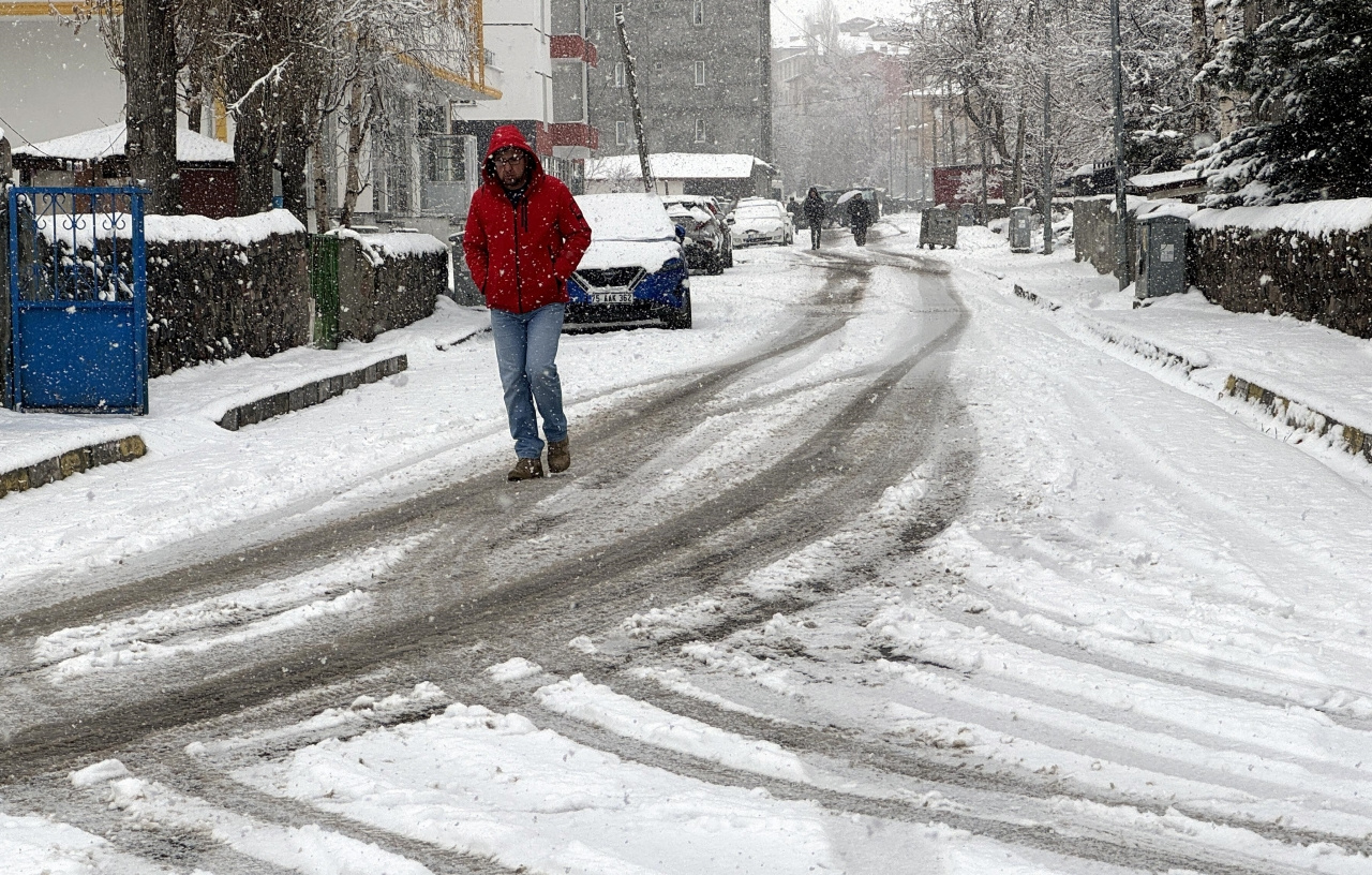 Park halindeki araçların karla kaplandığı kentte, sürücüler ve yayalar ilerlemekte güçlük çekti.
