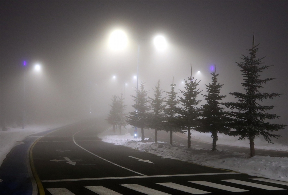 Kentte yol ve kaldırımlar buzla kaplandı, ağaçlar kırağı tuttu.
