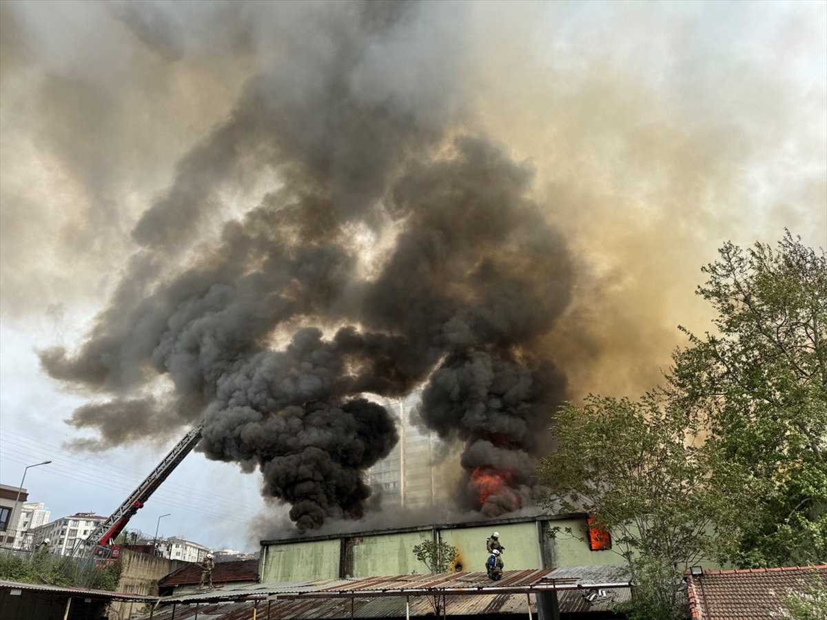Yangın nedeniyle imalathanede ara ara patlama sesleri duyuluyor.