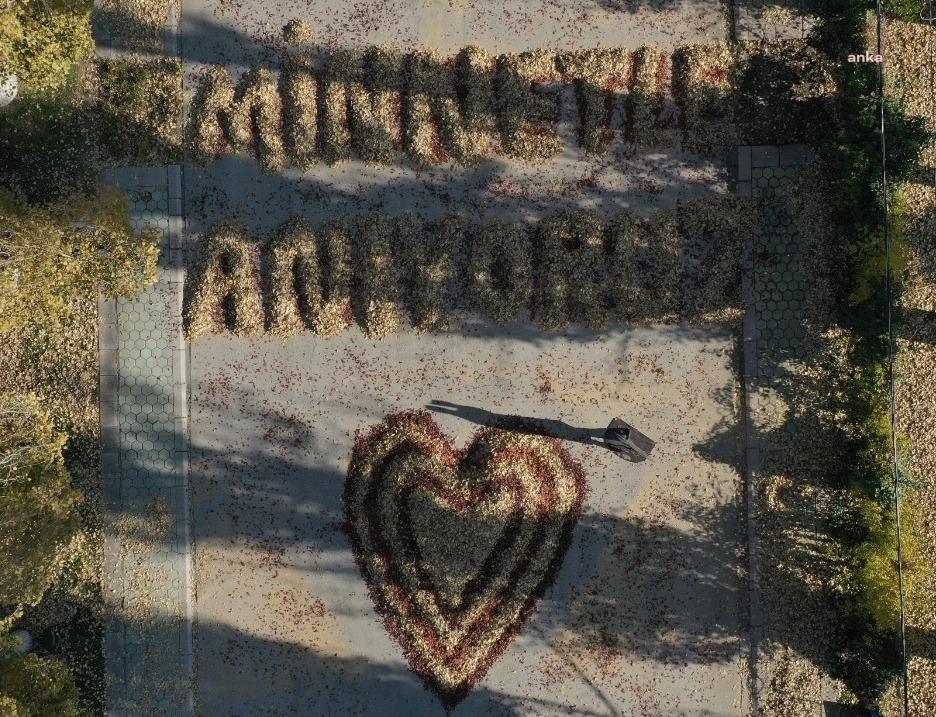 Eskişehir Büyükşehir Sazova Belediyesi Bilim Kültür ve Sanat Parkı temizlikçileri, Ulu Önder Atatürk’ün anısını kavak ağaçlarından binlerce yaprak toplayarak, “minnetle anıyoruz” yazarak ve kalp atarak kutladılar.