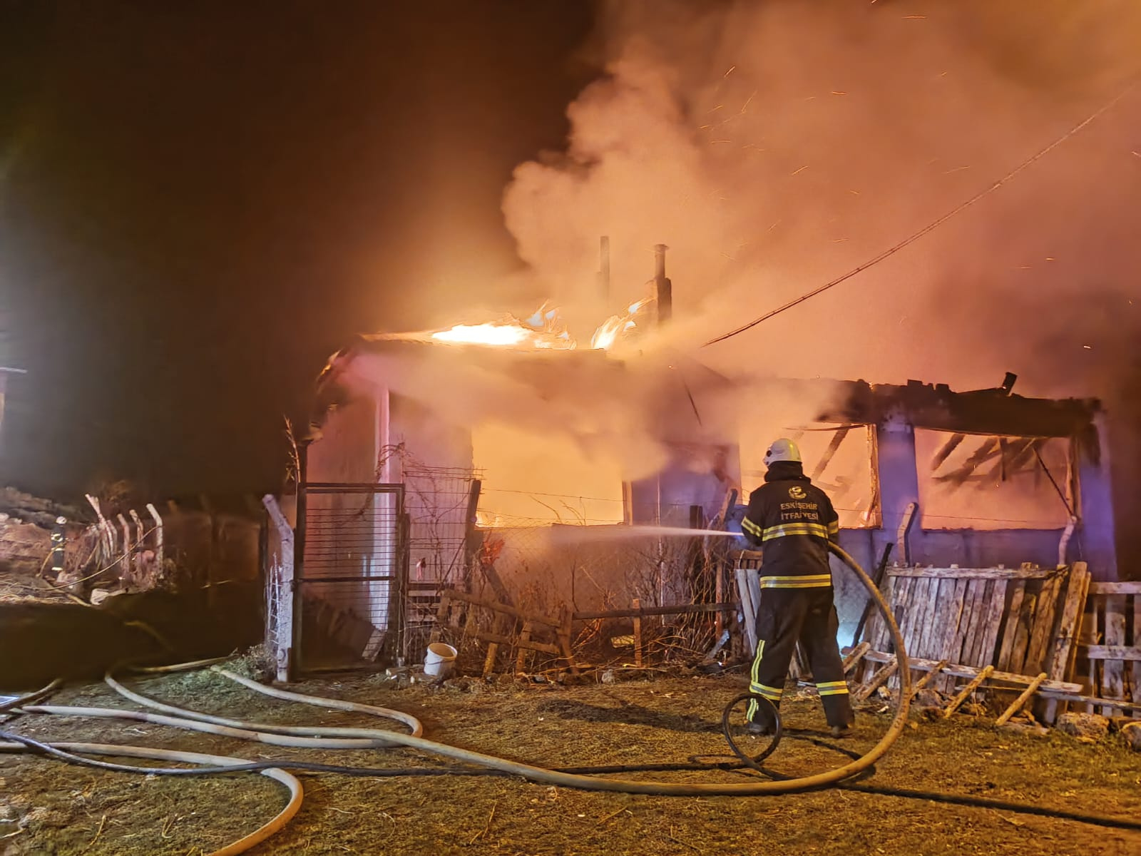 Kısa sürede büyüyen ve ağılın yanındaki tek katlı eve de sıçrayan alevlere, Eskişehir Büyükşehir Belediyesi itfaiye ekiplerince müdahale edildi.