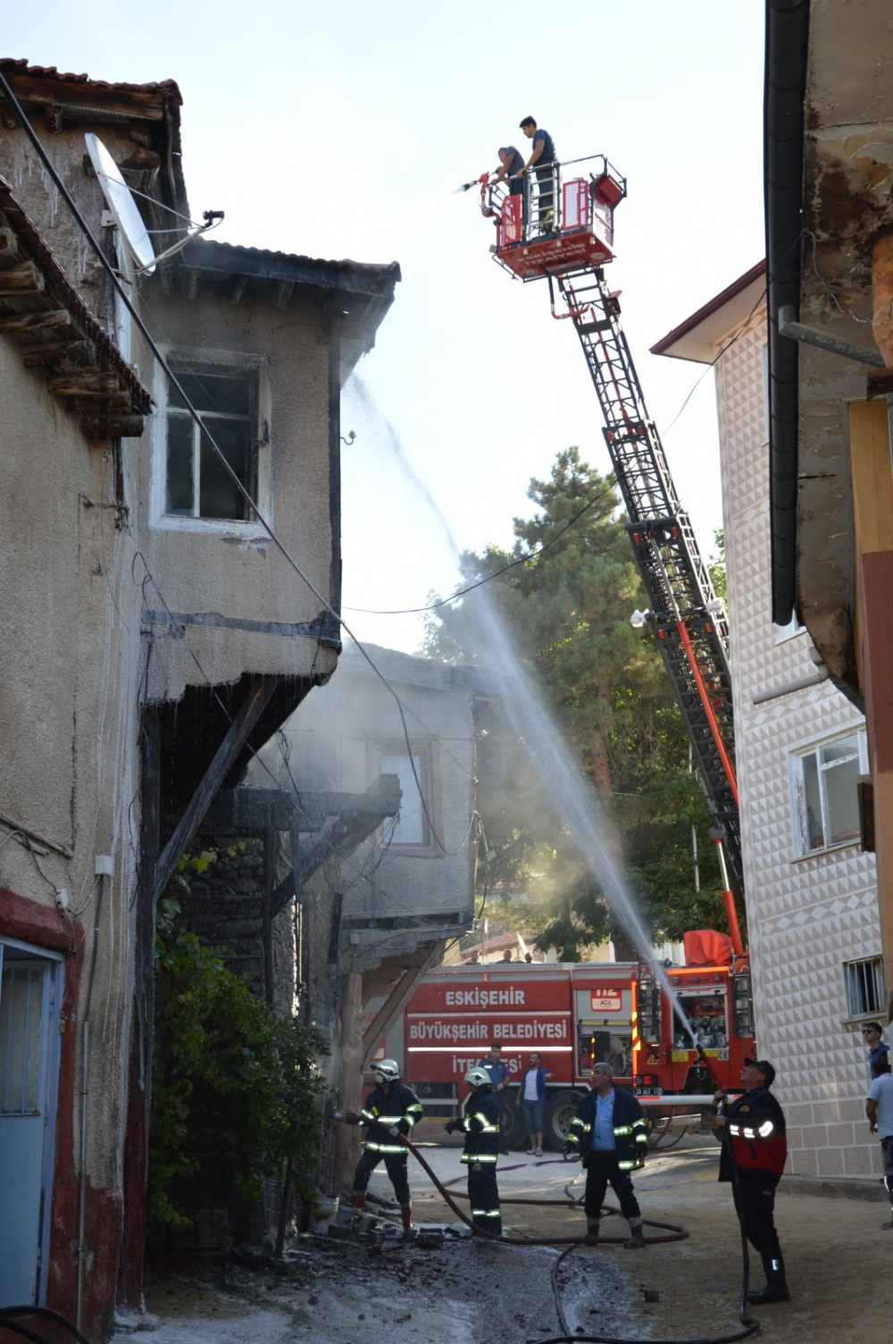 Söz konusu iki evin kullanılamaz hale geldiği, metruk binanın zarar gördüğü yangının çıkış nedeni araştırılıyor. (AA)