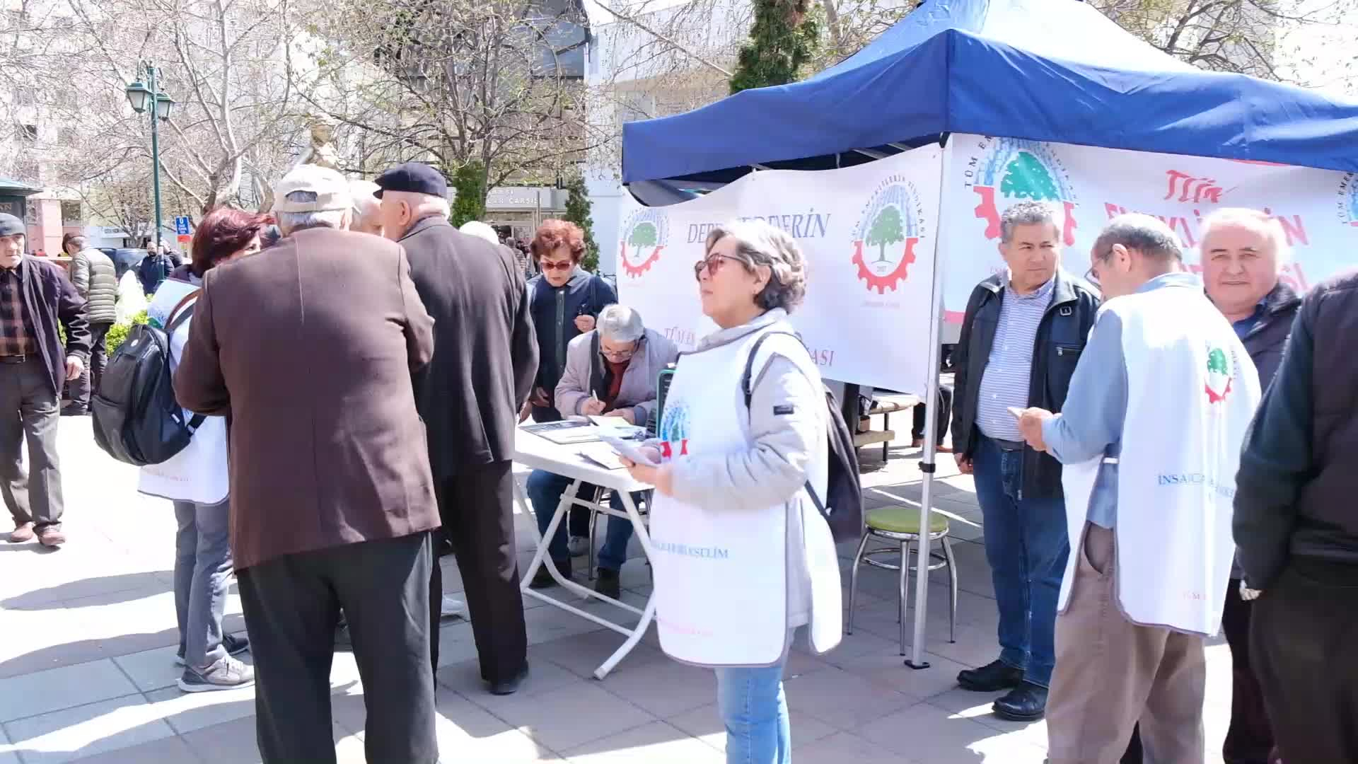 Tüm Emekliler Sendikası Eskişehir Şubesi, emeklilerin hakları ve depremzedelerin borçlarının silinmesi için imza kampanyası başlattı. Tüm Emekliler Sendikası Eskişehir Şube Başkanı Nalan Karagöz, Eskişehir Küpçü’de açılan pavyonda imza kampanyası başlamadan önce yaptığı basın açıklamasında şunları söyledi: