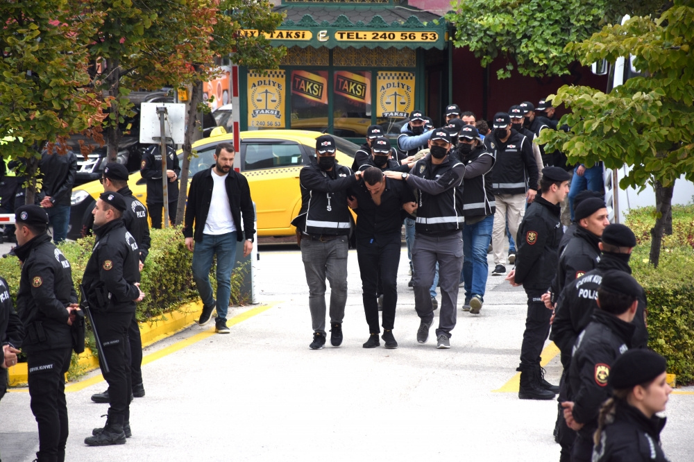 Eğlence yerlerinde sözde koruma ve güvenlik hizmeti sağlama adı altında halkın huzurunu bozdukları, kurdukları organize suç örgütüyle yasa dışı yöntemler kullanarak haksız kazanç elde ettikleri öne sürülen 21 kişi, savcılıktaki sorgularının ardından nöbetçi hakimliğe sevk edildi.