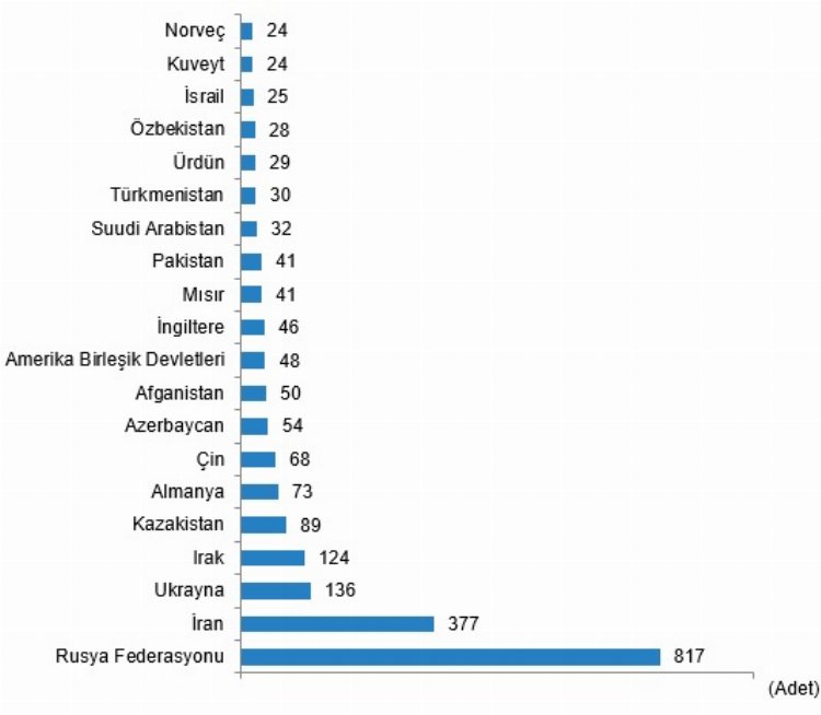 Nisan ayında Rusya Federasyonu vatandaşları Türkiye’den 817 konut satın aldı. Rusya Federasyonu vatandaşlarının ardından sırasıyla 377 konutla İran, 136 konutla Ukrayna ve 124 konutla Irak geldi.